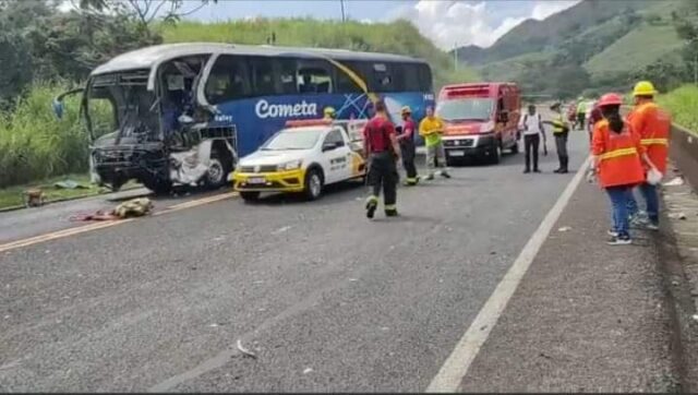 O ônibus ficou parado na pista e o motorista ficou preso às ferragens. A Viação Cometa disse que está apurando os fatos. O ônibus saiu de Poços de Caldas e seguia sentido a São Paulo.