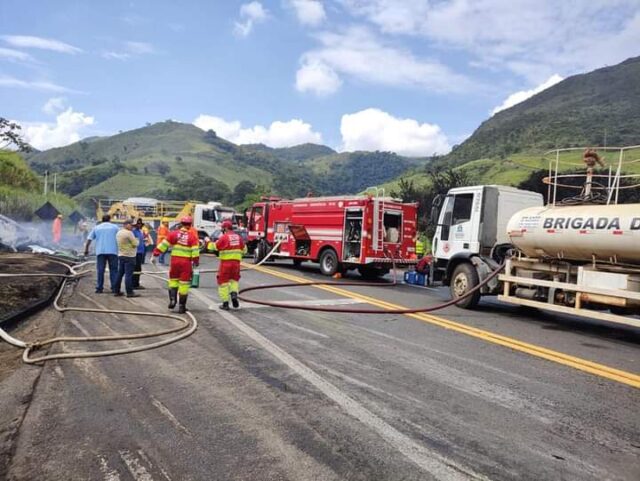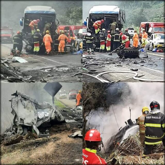 De acordo com a Polícia Militar Rodoviária, o caminhão estava carregado de material inflamável e bateu de frente contra um ônibus da viação Cometa e, em seguida, caiu em uma ribanceira da serra entre Águas da Prata e Poços de Caldas (MG). A explosão causou uma grande nuvem de fumaça negra ao lado da rodovia e provocou um incêndio na vegetação.