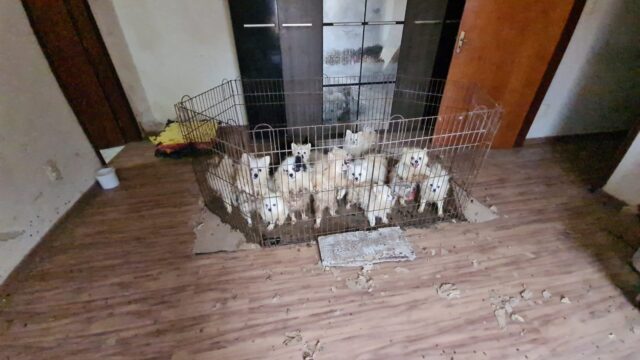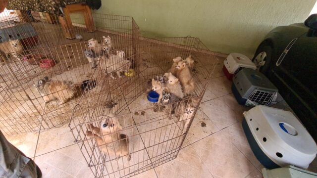 De acordo com informações, os animais estavam em situação de maus-tratos, sujos, sem comida e aglomerados em meio a fezes e urina. A ação foi realizada após denúncia de vizinhos que reclamavam do mau cheiro e moscas.