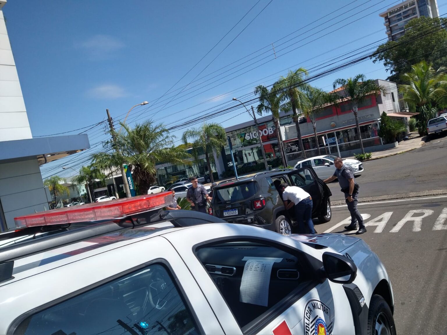 Em questão de minutos, as equipes de policiais da 4ª Companhia da Polícia Militar, no Centro, abordaram o veículo no cruzamento da Avenida Carlos Botelho com a Rua Doutor Paulo Pinto, no bairro Alto.