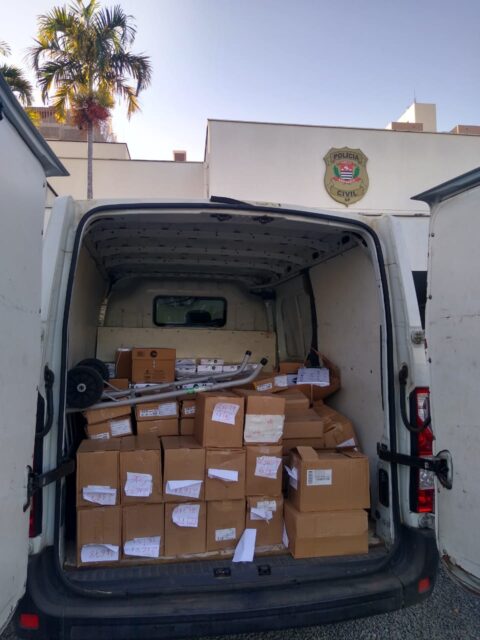 No decorrer da diligência foi localizado ainda um baú de caminhão e, em seu interior, uma carga de materiais para escritório também produto de furto, ocorrido na data de 08/04/2022 no município de Limeira.