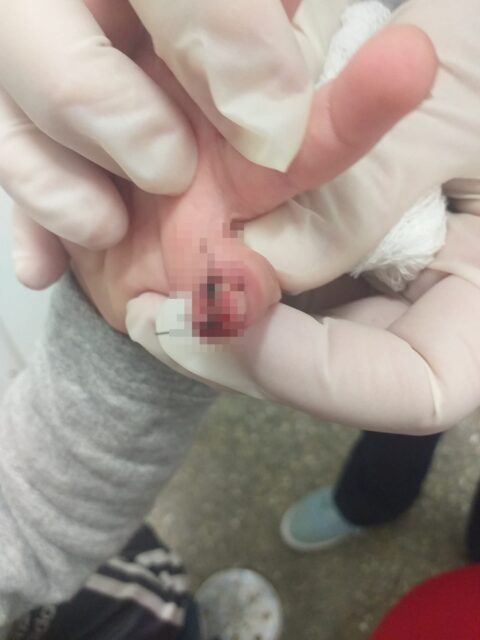 Devido à distância que a mãe estava da creche, ela ligou para o marido e pediu para que ele fosse rapidamente até a unidade educacional para acompanhar o filho. Quando o pai chegou no local, o bebê já estava com a mão enfaixada por conta dos primeiros socorros, não sendo possível visualizar o ferimento naquele primeiro momento.