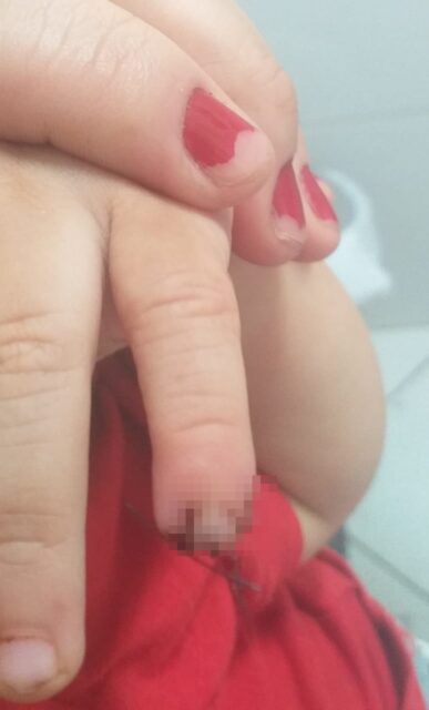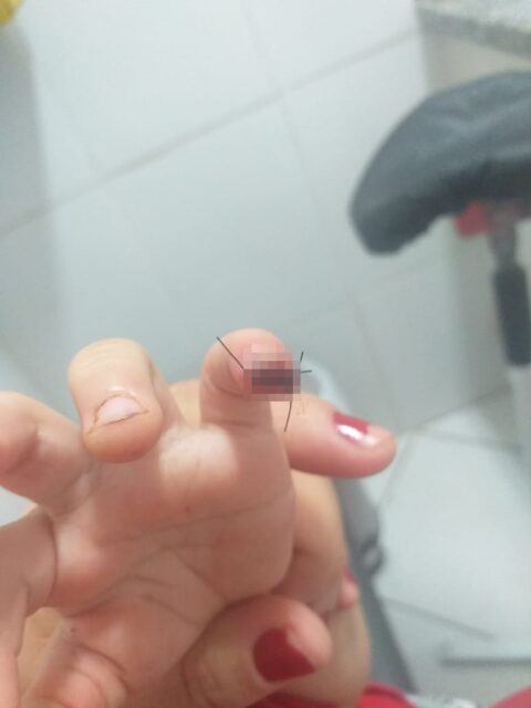 Na Santa Casa, o médico realizou o procedimento de sutura. Embora o menino tenha perdido a ponta do dedo, o doutor explicou que nenhum osso foi atingido, não necessitando assim de uma cirurgia.
