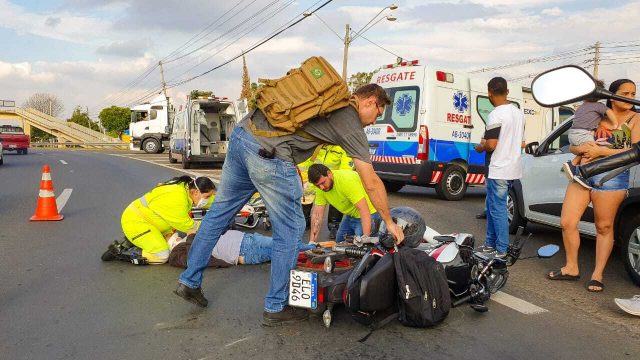 Um cantor de 52 anos foi socorrido na tarde de hoje (08), após colidir a motocicleta que dirigia contra a lateral de um Renault kwid, na rotatória do Parque Piracicaba, no Distrito de Santa Terezinha, zona norte de Piracicaba (SP).