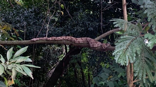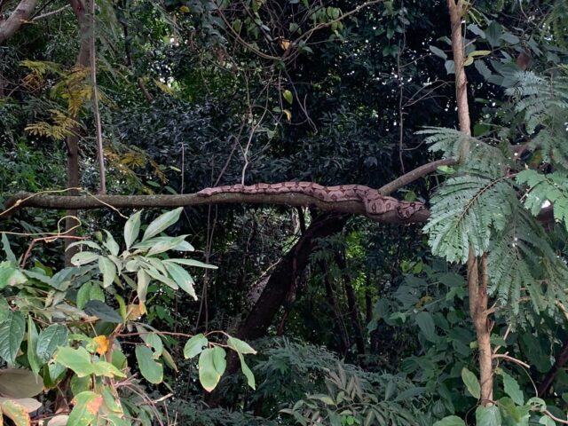 Nesta quinta-feira (09), a jiboia foi vista novamente no mesmo local.