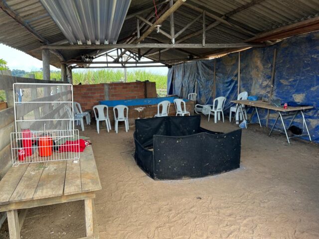 Segundo a Polícia Civil, no imóvel havia uma estrutura que continha dois cercados (rebolo) onde os galos eram colocados para brigar, dezenas de cadeiras para os participantes assistirem as lutas, caixas de papelão e gaiolas onde os animais aguardavam sua vez para brigar. Os policiais constataram ainda que churrasco e bebidas eram servidos para os participantes. Pelo local, foram encontrados 27 animais vivos que seriam utilizados na rinha e três animais mortos jogados ao lado de onde ocorria a rinha.
