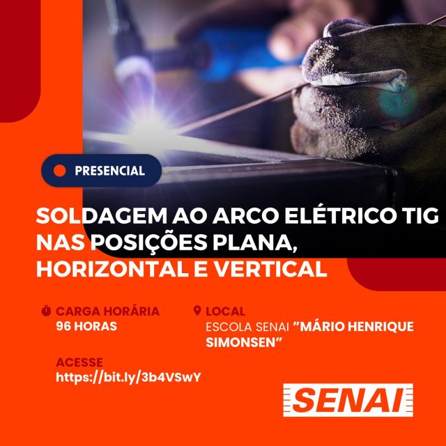 SOLDAGEM AO ARCO ELÉTRICO TIG NAS POSIÇÕES PLANA, HORIZONTAL E VERTICAL – 96 horas