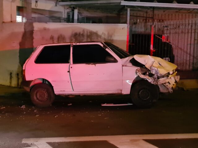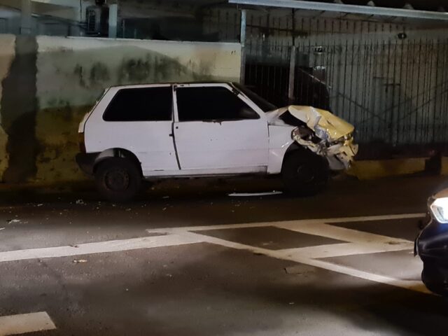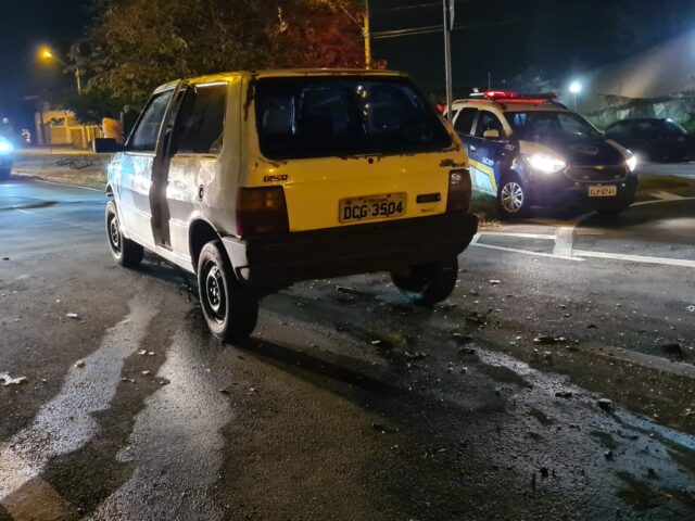 O Fiat Uno ficou destruído, tendo boa parte dos vidros quebrados. O ladrão será encaminhado para o plantão policial no centro.