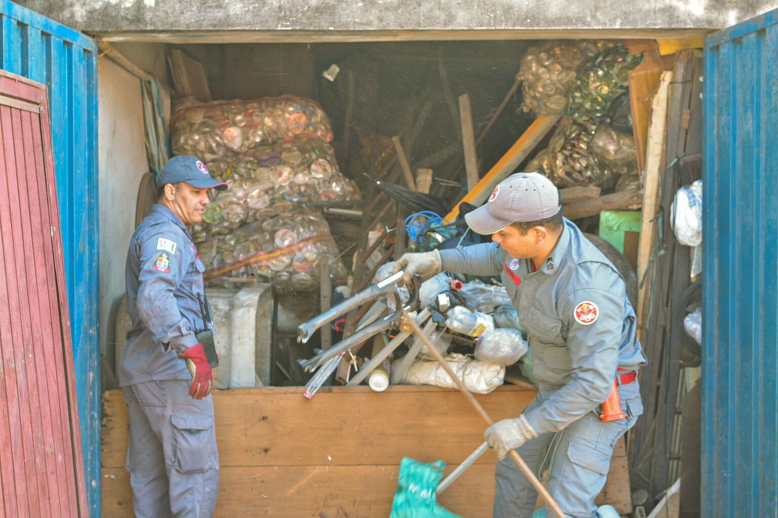 A quantidade de lixo é tanta que ultrapassa o telhado da casa. Acionada, a Prefeitura enviou equipes e caminhões para remover, o mais rápido possível, o lixo. Os bombeiros tentam, a cada nova fresta, fazer contato com o acumulador, mas sem nenhum retorno dele.