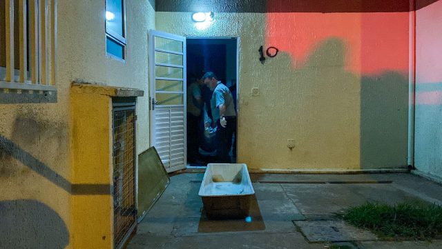 Seguindo o plantão iniciado há pouco, publicamos agora as primeiras imagens que chegam do condomínio onde um homem de 43 anos foi executado e uma mulher de 40 anos baleada.