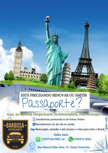 Está precisando renovar ou emitir seu passaporte? Agora a Barbosa Despachante Documentalista também oferece esse serviço para você. Com atendimento presencial ou de forma online, você ainda pode parcelar todos os custos em até 18x no cartão.