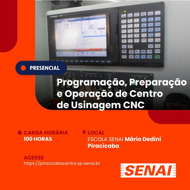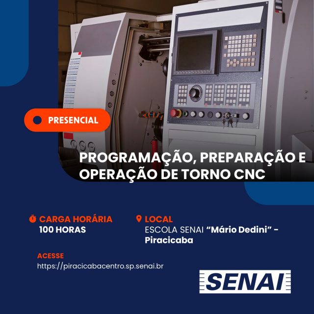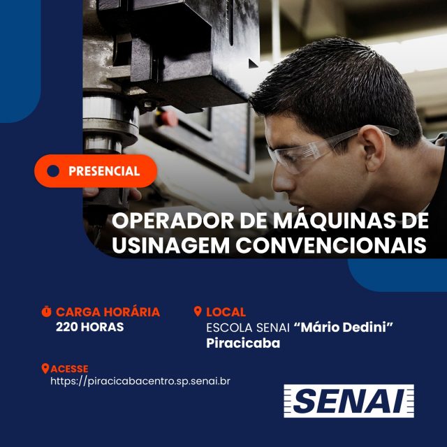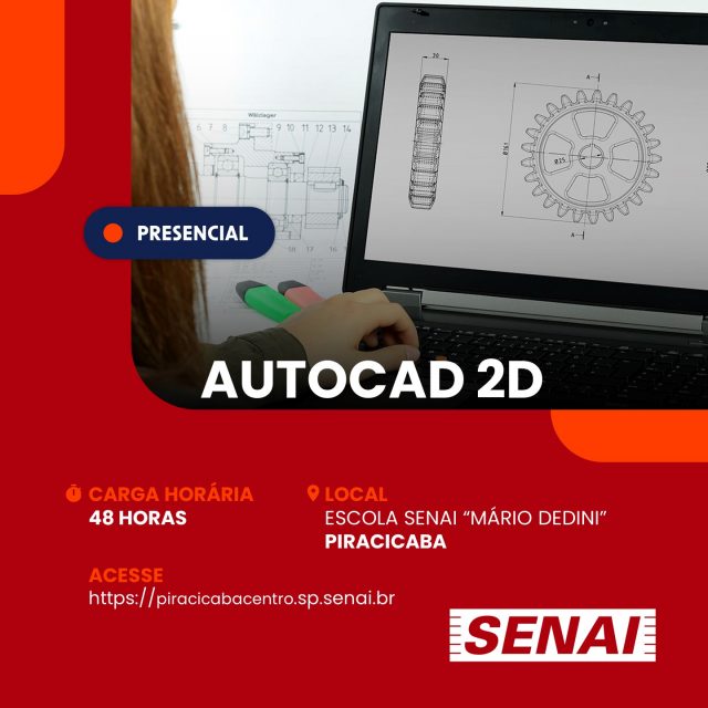 As aulas acontecem na própria escola nos períodos da noite e aos sábados. As aulas começam a partir da segunda quinzena de outubro. As vagas são limitadas e as inscrições podem ser feitas através do site https://piracicabacentro.sp.senai.br para os cursos de: