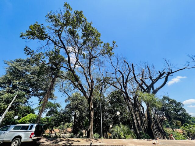 As três árvores são: falsa seringueira (ficus elastica), figueira lira (ficus lirata) e palmeira rabo de peixe (caryota urens). A palmeira e a figueira serão suprimidas na terça-feira, 29/11. A falsa seringueira, na quarta, dia 30/11 – a árvore, que está seca, tem aproximadamente 40 metros de altura.