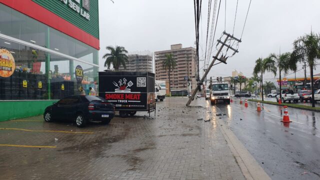 De acordo com informações, o acidente aconteceu no sentido Centro da cidade e o veículo envolvido ainda está no local. O poste ficou “pendurado” e há congestionamento por conta da faixa interditada. O carro ficou bastante destruído.
