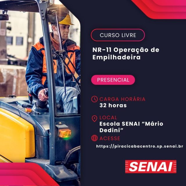 - Para inscrever-se, acesse: https://piracicabacentro.sp.senai.br/curso/69908/503/nr11-operacao-de-empilhadeira