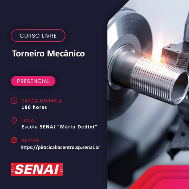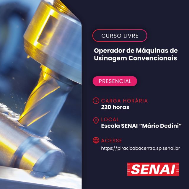 O Senai Centro de Piracicaba (SP) divulgou que está com matrículas abertas para quatro cursos. Veja abaixo as opções e como se matricular.