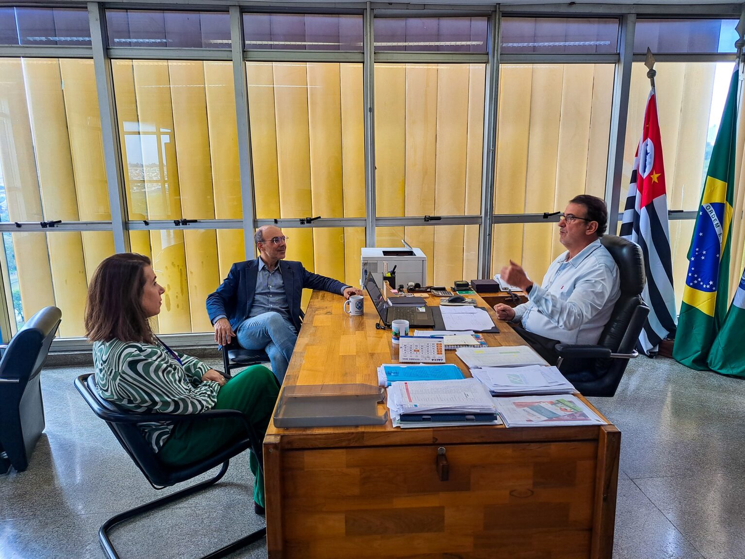 Em Piracicaba, o prefeito Luciano Almeida e a titular da Semuhget (Secretaria Municipal de Habitação e Gestão Territorial), Andrea Ribeiro Gomes, reuniram-se com o subsecretário estadual de Desenvolvimento Urbano, José Police Neto, para discutir projetos que visam reabitar o centro da cidade e promover a regularização fundiária.