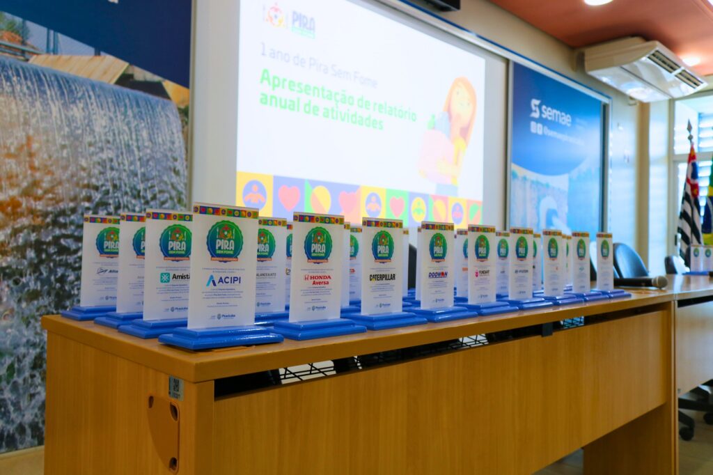 Com a união e solidariedade de empresas e pessoas, o projeto Pira Sem Fome, do Fundo Social de Solidariedade de Piracicaba (Fussp), completou um ano neste mês de agosto. A cerimônia de celebração aconteceu ontem (29) no auditório do Museu da Água. Durante o evento, todos os 53 parceiros do projeto que, até o momento, permitiram que o Fussp doasse 3.720 cestas a famílias de Piracicaba, receberam uma homenagem das mãos da presidente do Fundo Social, Andréa Almeida, e do prefeito Luciano Almeida.