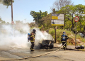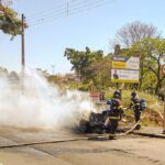 Segundo informou a corporação para a reportagem, um caminhão auto bomba passava pela Avenida Presidente Juscelino Kubitscheck, atrás do restaurante fast-food Habibb’s, quando avistou o veículo em chamas.