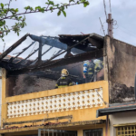 Neste momento, os bombeiros estão deixando o local, e os moradores estão trabalhando para remover os escombros do telhado danificado, que está em risco de desabar.