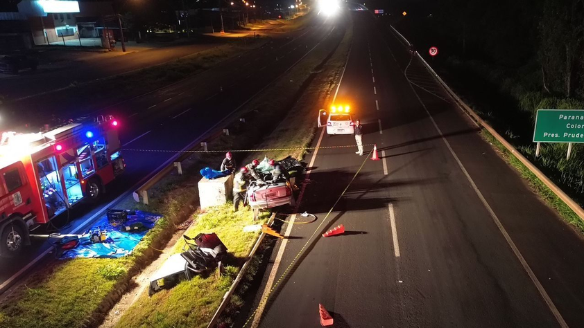 O impacto resultou na morte instantânea do motorista e da passageira. Os ocupantes do banco de trás ficaram presos às ferragens. Equipes do Corpo de Bombeiros foram acionadas e utilizaram ferramentas especiais para cortar a fuselagem do veículo e resgatar as vítimas. Os três sobreviventes foram encaminhados para hospitais em Maringá.