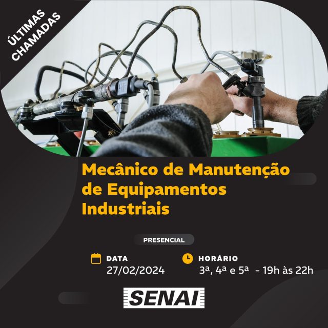 - MECÂNICO DE MANUTENÇÃO DE EQUIPAMENTOS INDUSTRIAIS (para inscrever-se, acesse o link: https://bit.ly/42f6jEx)