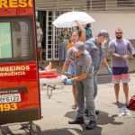 A idosa sofreu um traumatismo cranioencefálico (TCE), um corte na região lateral da cabeça e uma fratura no fêmur. Ela foi encaminhada para o Hospital Unimed para receber atendimento médico.