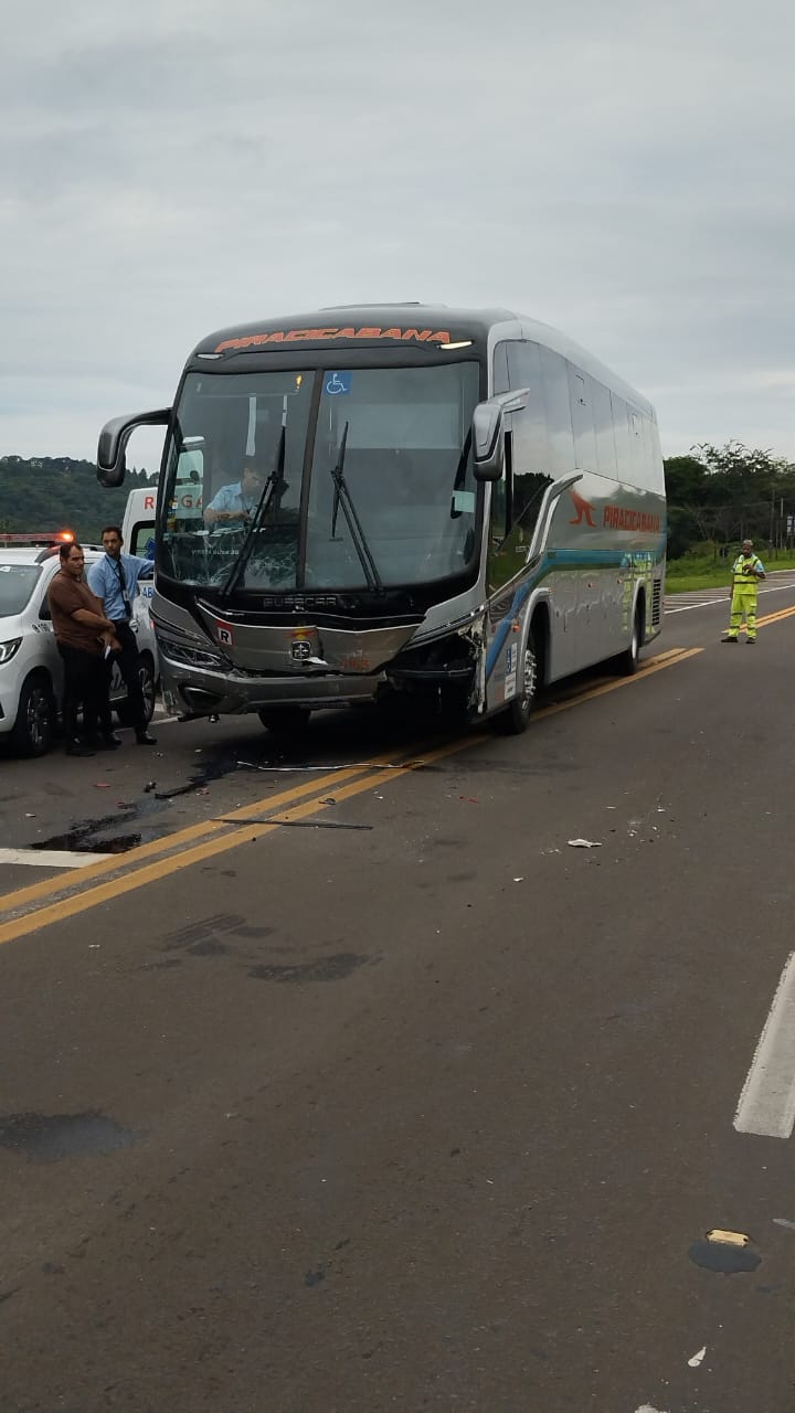 São 17h40. O PIRANOT informa que um casal, aparentando ser idoso, faleceu há pouco após uma colisão entre um carro e um ônibus. O acidente ocorreu no sentido de Piracicaba até a entrada de Águas de São Pedro, na Rodovia Geraldo de Barros.