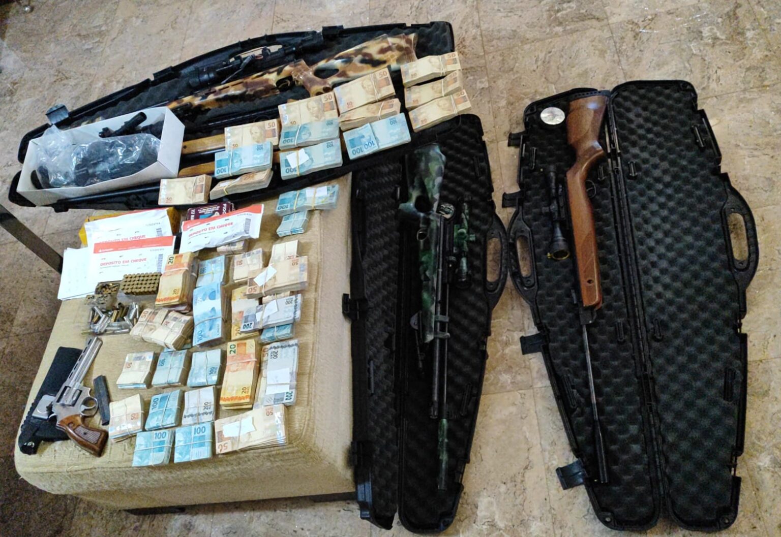 A ação, realizada em conjunto pela Polícia Civil, Polícia Militar e Ministério Público, resultou na apreensão de uma grande quantia em dinheiro e três armas na posse dos indivíduos, que foram encaminhados à Polícia Judiciária de Piracicaba. Segundo o 10º Batalhão de Ações Especiais (Baep) da Polícia Militar de Piracicaba, o material passará por análise para saber a quantidade total apreendida.