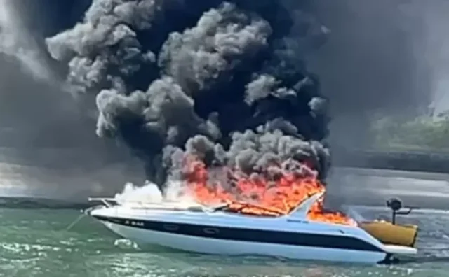 Uma semana depois, no dia 17, uma lancha pegou fogo perto da Ilha do Papagaio, também em Cabo Frio. Os cinco adultos que estavam na embarcação se jogaram no mar e escaparam ilesos.