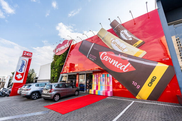 A Rede Drogal acaba de criar em parceria com a Cimed, uma loja conceito do hidratante labial Carmed, com identidade visual da marca capaz de proporcionar uma experiência especial aos consumidores. Primeira e única farmácia a realizar essa ação promocional, durante 60 dias a loja ficará com sua fachada decorada, com espaços instagramáveis e promoções especiais.