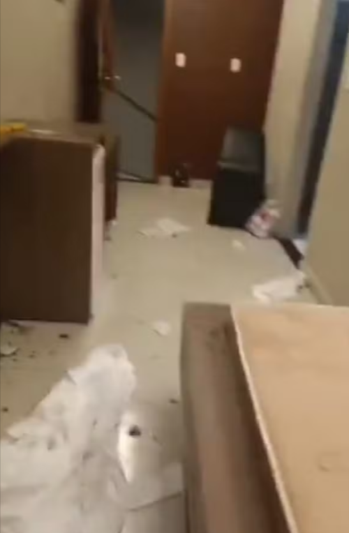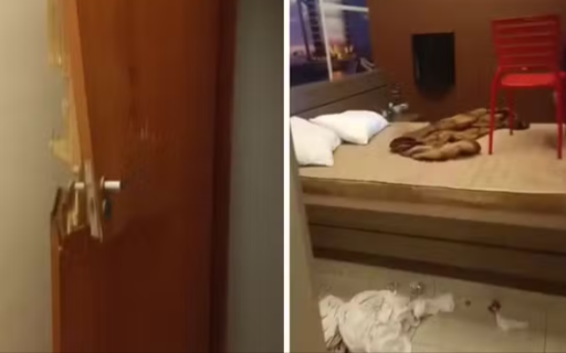 Durante o conflito, diversos itens da suíte foram danificados, incluindo vasos de plantas, telefone, copos, portas, além dos controles remotos da televisão e do ar-condicionado.