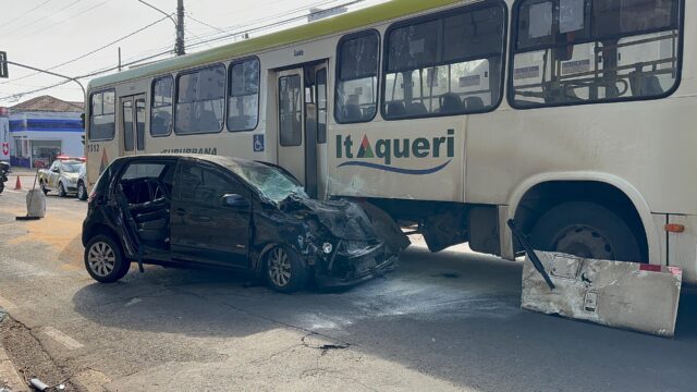 Um acidente na manhã deste domingo (11), envolvendo um veículo VW Fox e um ônibus deixou dois jovens feridos. O acidente ocorreu no cruzamento da Rua Benjamin Constant com a Avenida Dr. Paulo de Moraes, próximo a um semáforo.