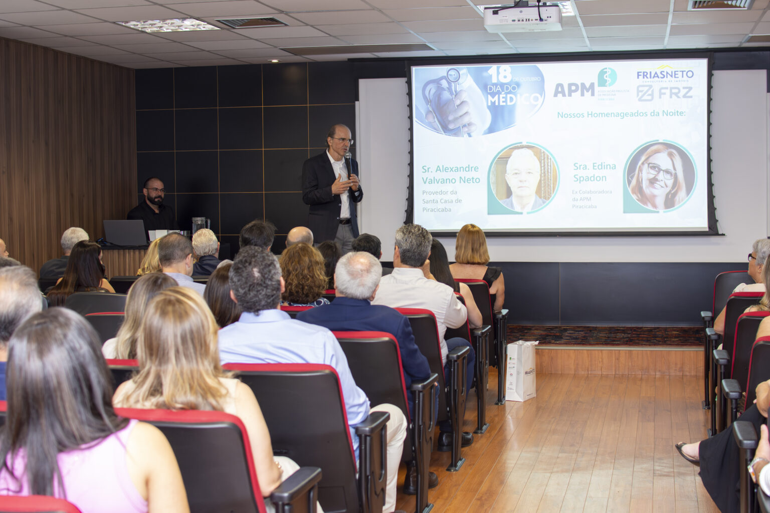 Na última quinta-feira, 17, o auditório Nadir Maria Manin Frias, na Frias Neto Consultoria de Imóveis ficou repleto de profissionais que atuaram para o crescimento na área da saúde em Piracicaba para uma sessão solene de homenagem pela atuação impactante na área da saúde, em prol do Dia do Médico, comemorado em 18 de outubro.