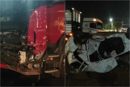 Um acidente envolvendo duas carretas e dois carros na noite de ontem (01) resultou na morte de um casal e deixou outras cinco pessoas feridas, em…