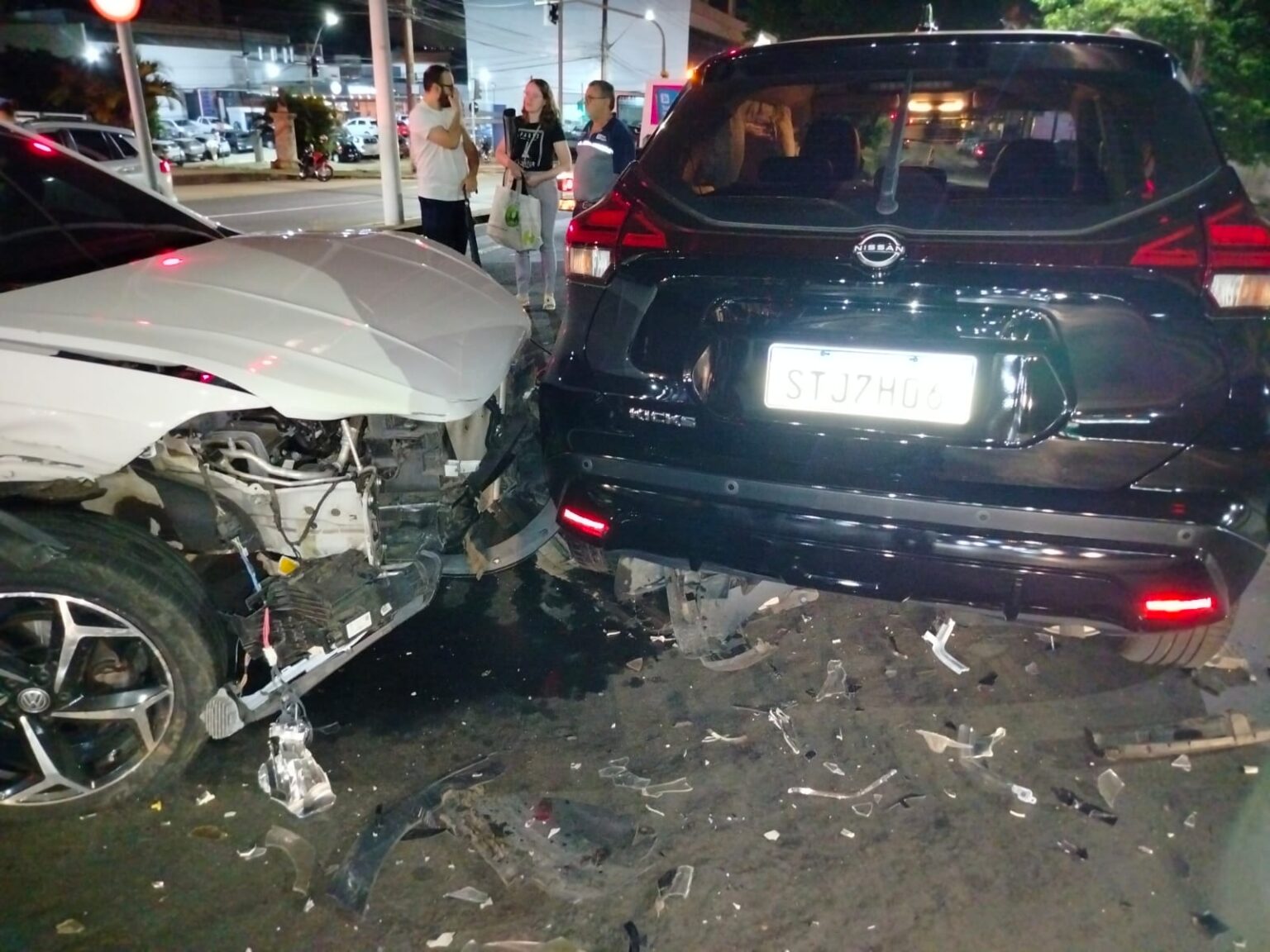 Segundo informações apuradas no local, os carros envolvidos foram um Nissan Kicks, um Volkswagen Nivus branco e uma Chevrolet Meriva na cor chumbo. Apesar da colisão, não houve vítimas, e os motoristas não necessitaram de atendimento médico.