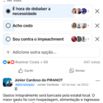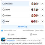 Em abril de 2021, quando o governo municipal completava 100 dias, foi publicada uma enquete no grupo “Júnior Cardoso do PIRANOT” — com mais de 70 mil membros — perguntando: “Como você está avaliando o novo governo?”. A repercussão foi imediata. Com mais de 1.100 votos, os resultados indicaram forte insatisfação da população: