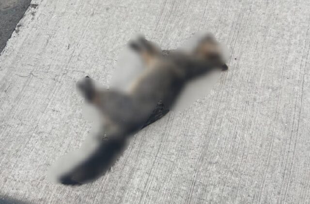 O corpo foi avistado por uma motorista que passava pelo local por volta das 6h30. Ela sentiu um forte odor e, ao perceber que se tratava de um animal atropelado, retirou o corpo da pista para evitar que motociclistas sofressem acidentes ao não notarem o obstáculo.
