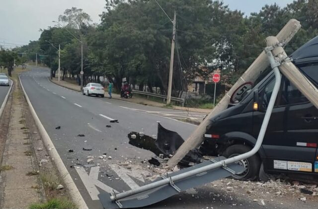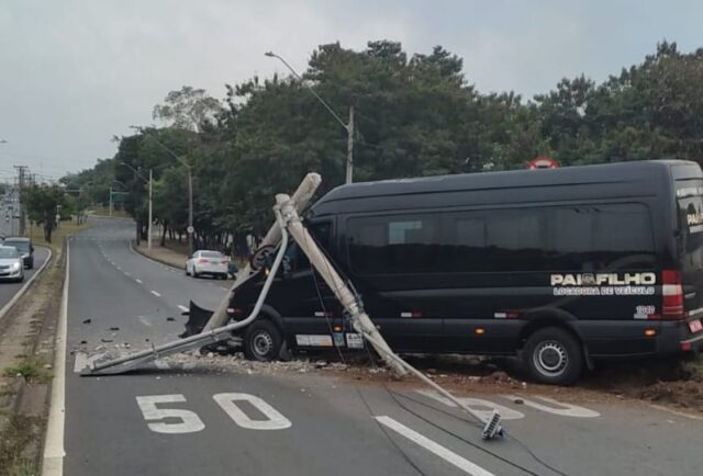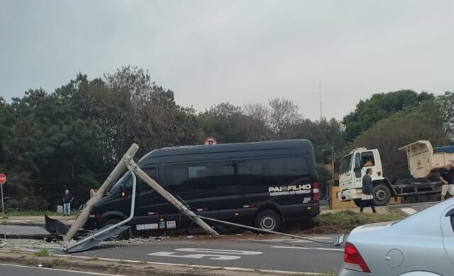 Uma van colidiu violentamente contra um poste na manhã desta terça-feira (5), na alça de acesso à Avenida Corcovado, no bairro Santa Terezinha, em Piracicaba (SP).