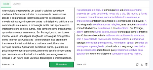 Se você estiver usando gratuitamente, haverá um limite de 400 palavras para humanização de uma só vez. Para aumentar o limite, você terá que adquirir um plano premium.
