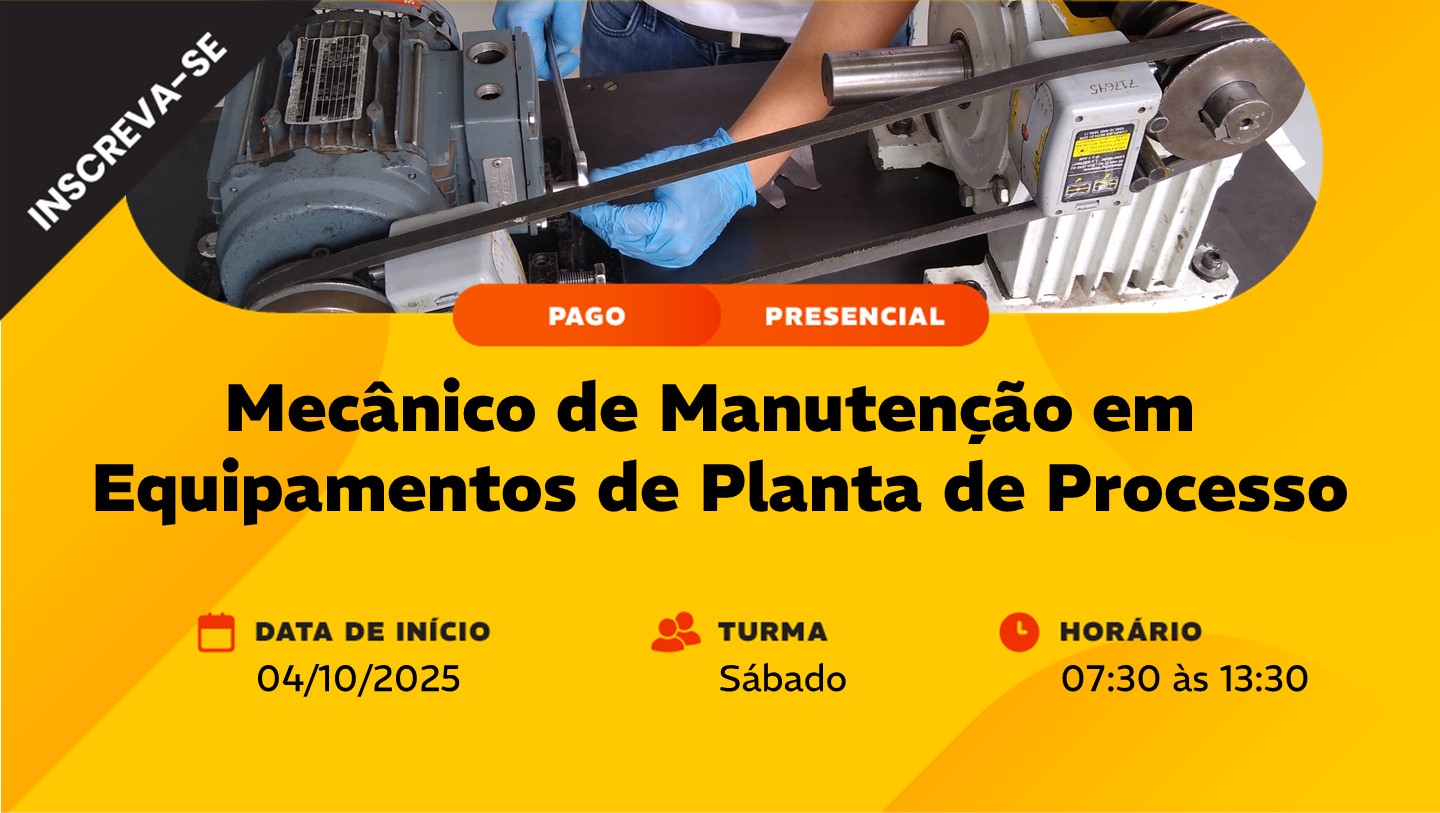 - Mecânico de Manutenção em Equipamentos de Planta de Processo – Inscreva-se aqui
