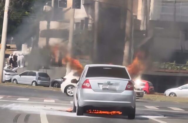 Pedestres e motoristas que passavam pelo local ficaram impressionados com a cena e registraram imagens do fogo nas redes sociais.