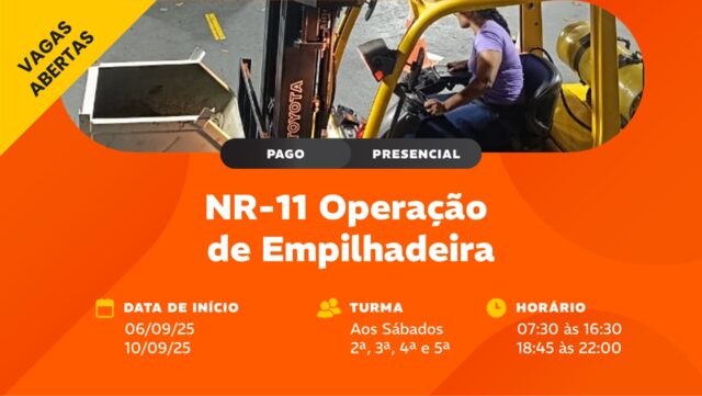 NR-11 – Operação de Empilhadeira: clique aqui e se inscreva!