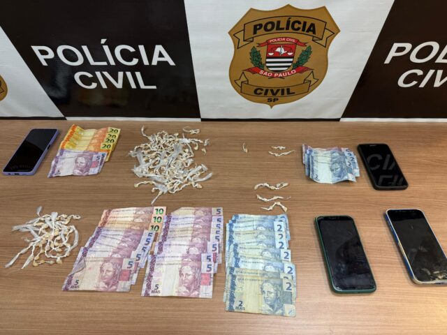 Na sequência, as equipes retornaram ao ponto de venda e abordaram a mulher e outros dois homens, de 54 e 36 anos, também com antecedentes criminais. No local, foram apreendidas 250 porções de crack, R$ 201 em espécie e quatro celulares. Os policiais constataram ainda que a droga era escondida em buracos na calçada.