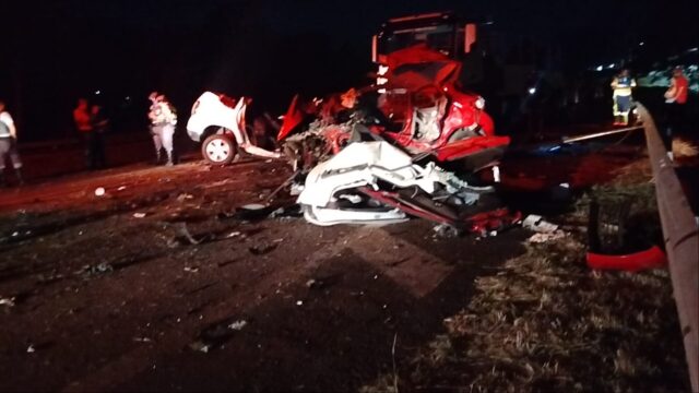 Equipes do Corpo de Bombeiros, do Departamento de Estradas de Rodagem (DER) e da Polícia Rodoviária trabalham neste momento na retirada das vítimas das ferragens e na organização do tráfego na região.