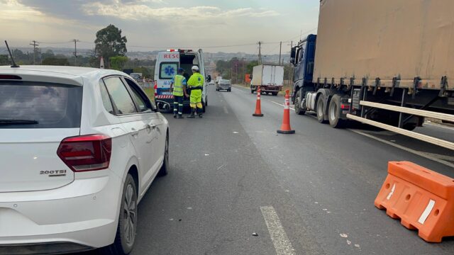 O motociclista, de 30 anos, contou que seguia para uma consulta odontológica quando, devido ao trânsito parado por causa de obras na rodovia, não conseguiu frear a tempo e atingiu o pedestre que atravessava a via. Ele teve escoriações no joelho, mas recusou atendimento médico.