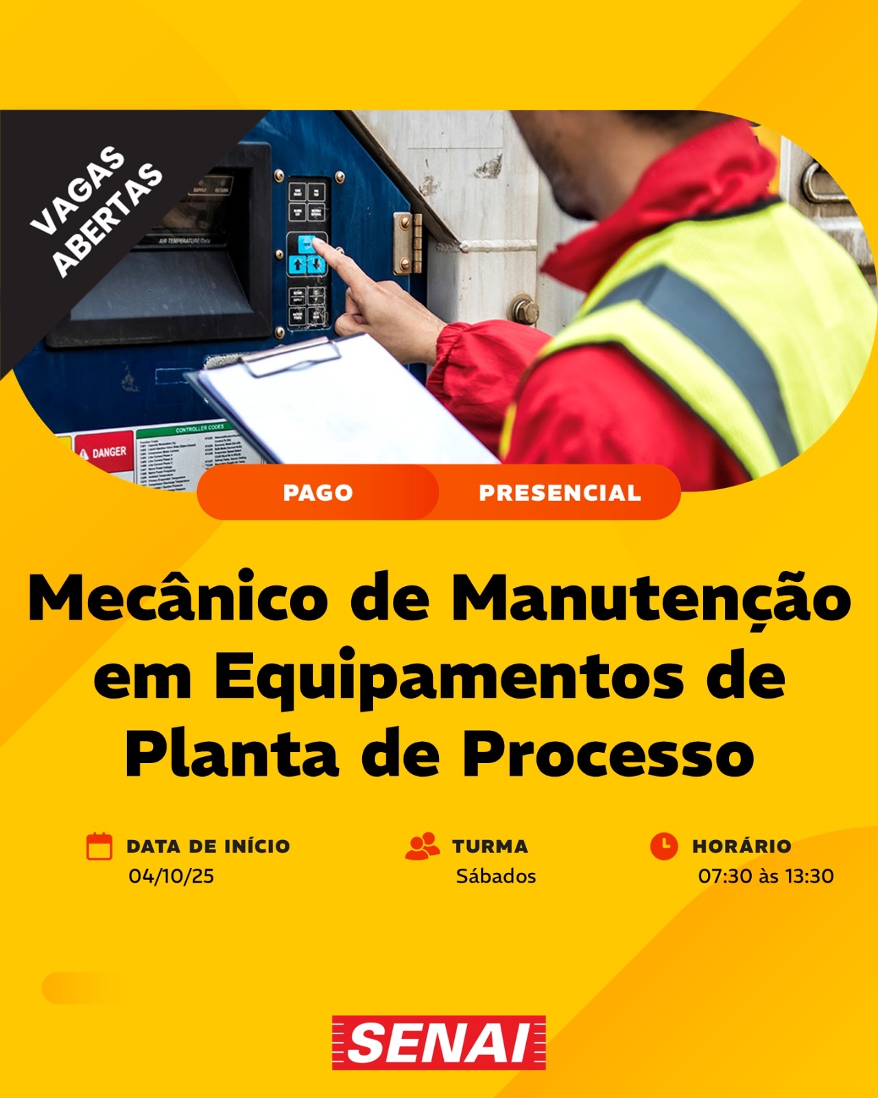 Mecânico de Manutenção em Equipam. de Planta de Processo – Inscreva-se aqui
