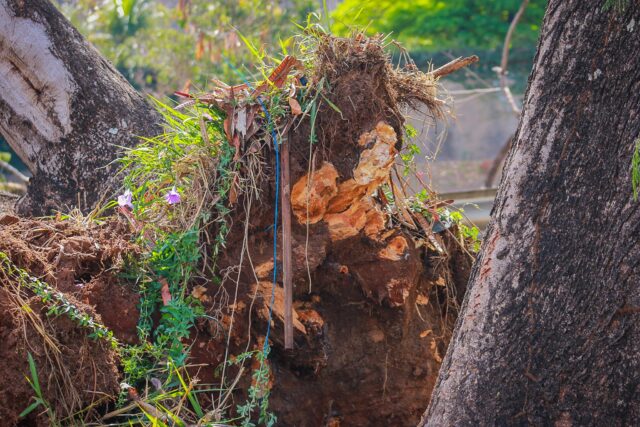 De acordo com as informações iniciais, ninguém foi ferido, e a árvore ainda não foi removida.
