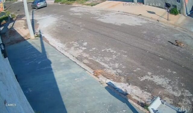 Câmeras de segurança registraram o momento em que uma cachorrinha foi abandonada ontem (15), nas proximidades do bairro Conquista, próximo ao Parque Piracicaba, em Piracicaba (SP).