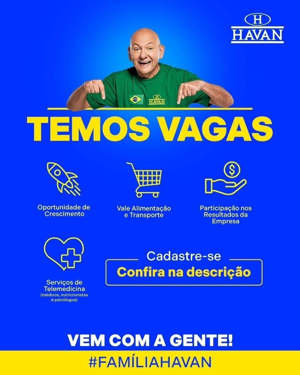A Havan de Piracicaba está com vaga aberta para Operador de Caixa e Comercial, com jornada das 14h às 22h20. A empresa busca profissionais dinâmicos, proativos e interessados em crescer dentro de um ambiente que valoriza o bem-estar de seus colaboradores.